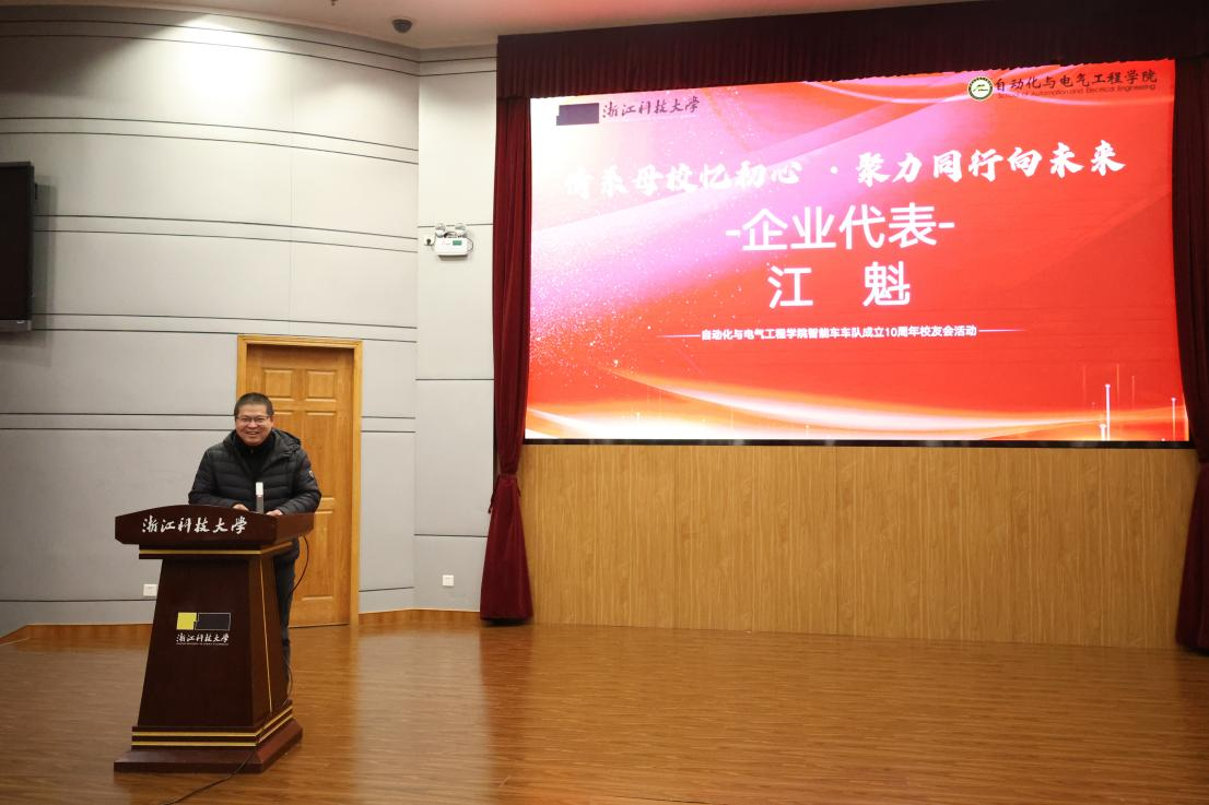 校友发言环节温情与励志交织。2002级校友、云尖信息技术股份有限公司产品部部长江魁,分享了自身成长感悟,他鼓励学弟学妹们奋发图强、精进学业,祝愿智能车车队蒸蒸日上,并向学子们发出诚挚邀请,期待大家未来能加入云尖信息,共筑事业华章。